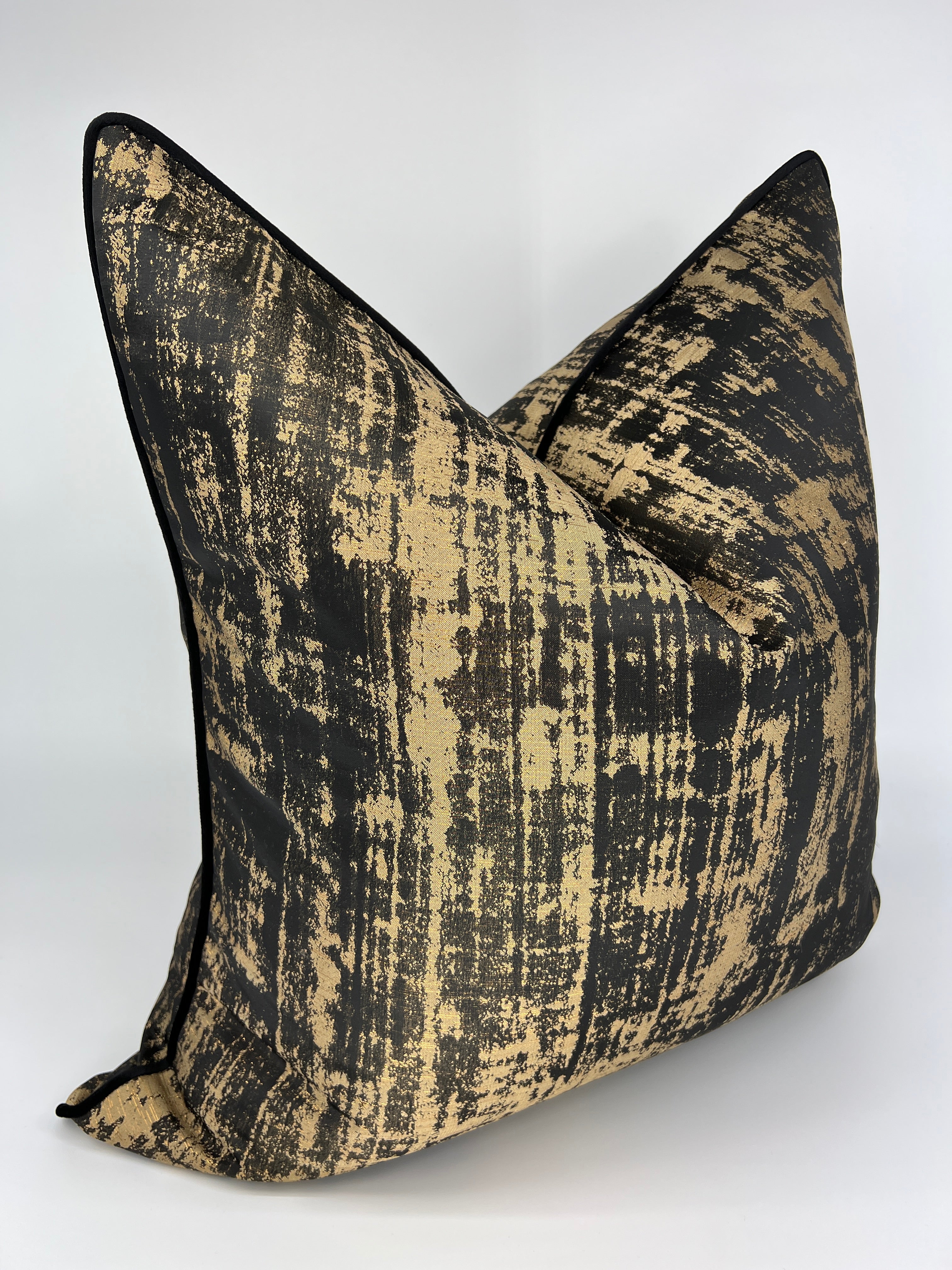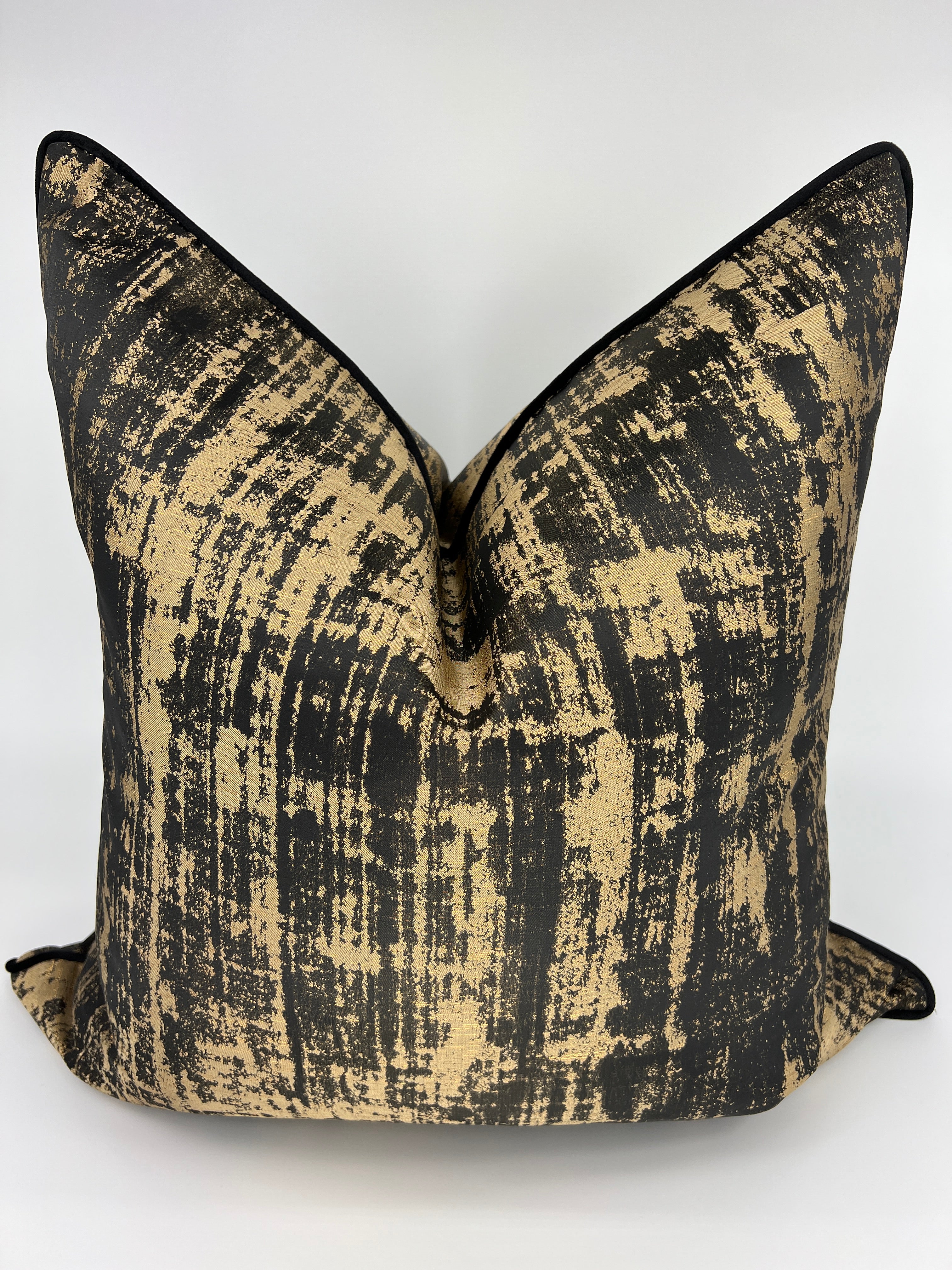 Size: 24" x 24" Fabric: Black & Gold Jacquard on both sides Zipper: Invisible Cover Only: Pillow Insert not included. We recommend using a 26" x 26" feather/down insert to achieve a designer look FREE SHIPPING NO TAX Shipping Time: 5-7 days 30 Day Return Policy: All items in new...