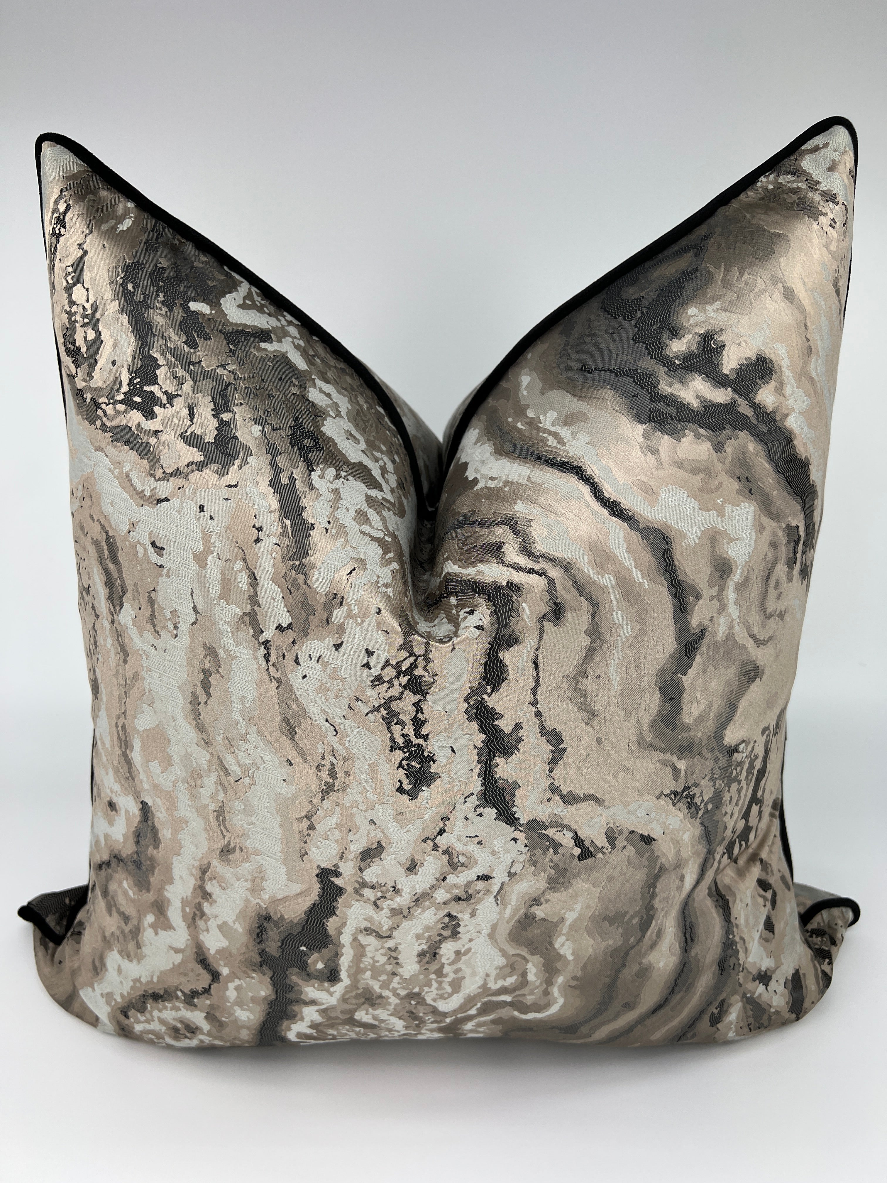 Fabric: Brown, Cream, Black Marble Jacquard on both sides with Black Velvet Welt