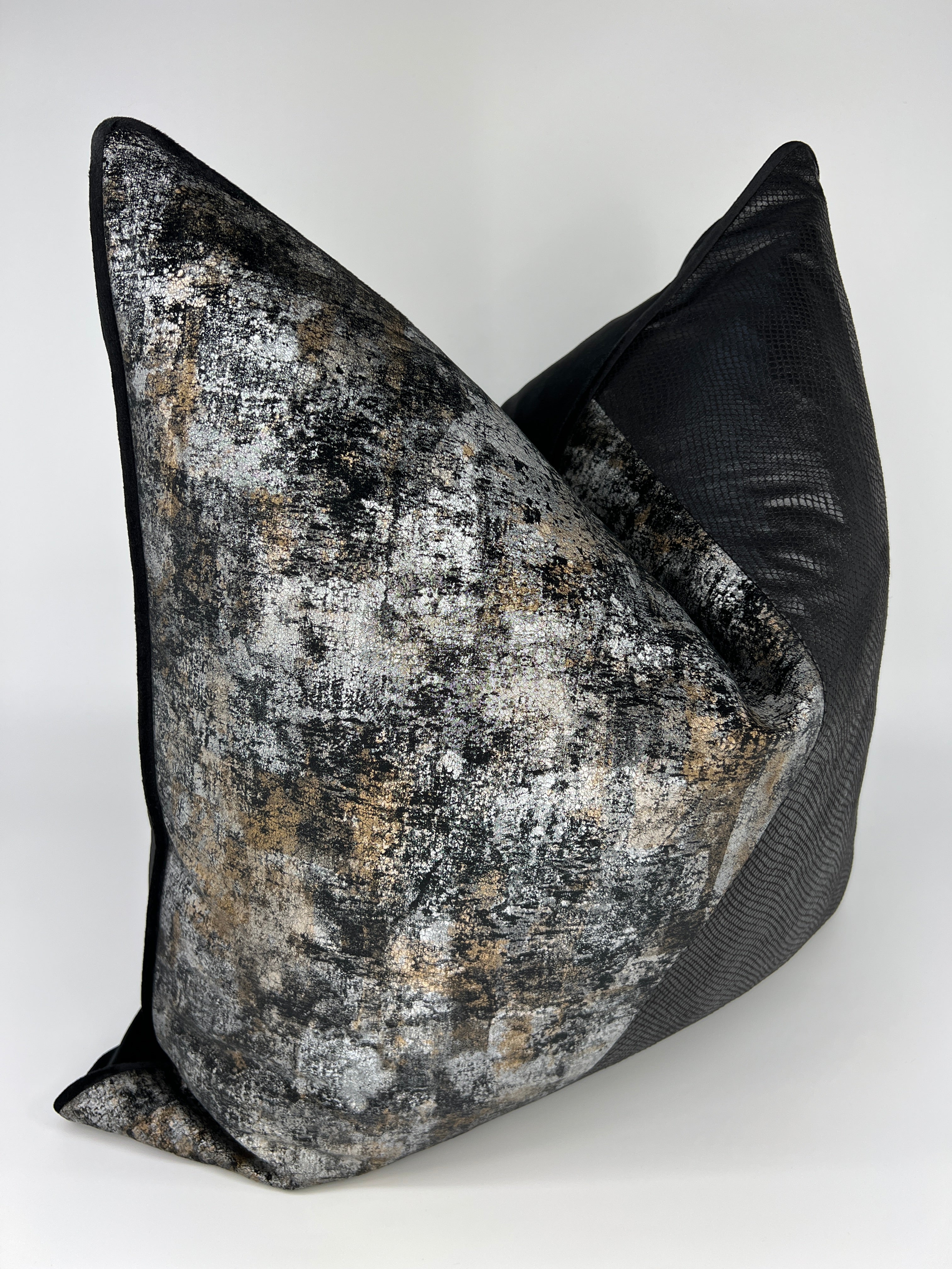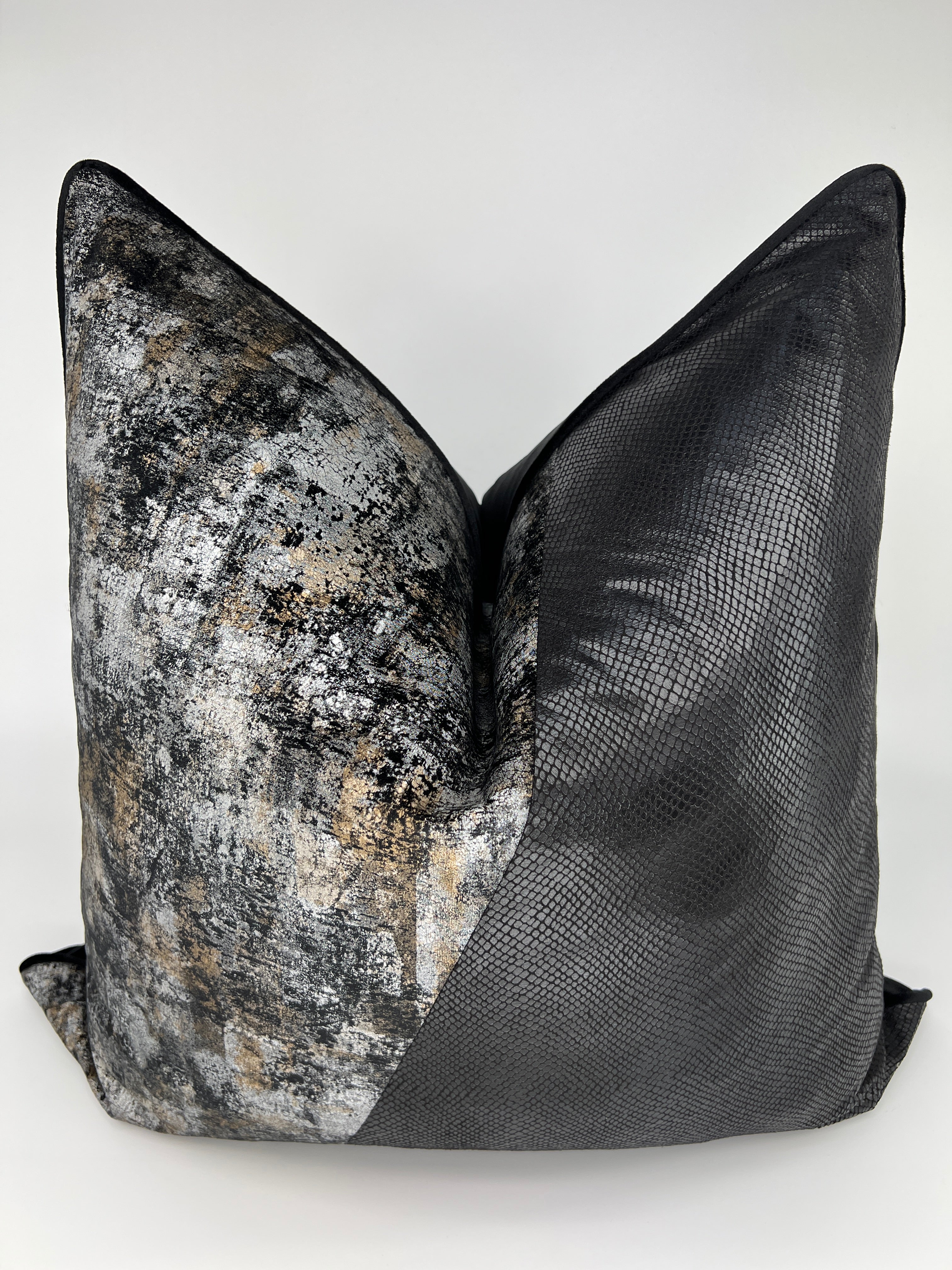 Size: 24" x 24" Fabric: Black Shimmery Faux Snake Skin & Luxurious Gray, Black, Cream, & Umber with Black Velvet on the back & Black Velvet Welt  Zipper: Invisible Cover Only: Pillow Insert not included. We recommend using a 26" x 26" feather/down insert to achieve a designer look FREE...