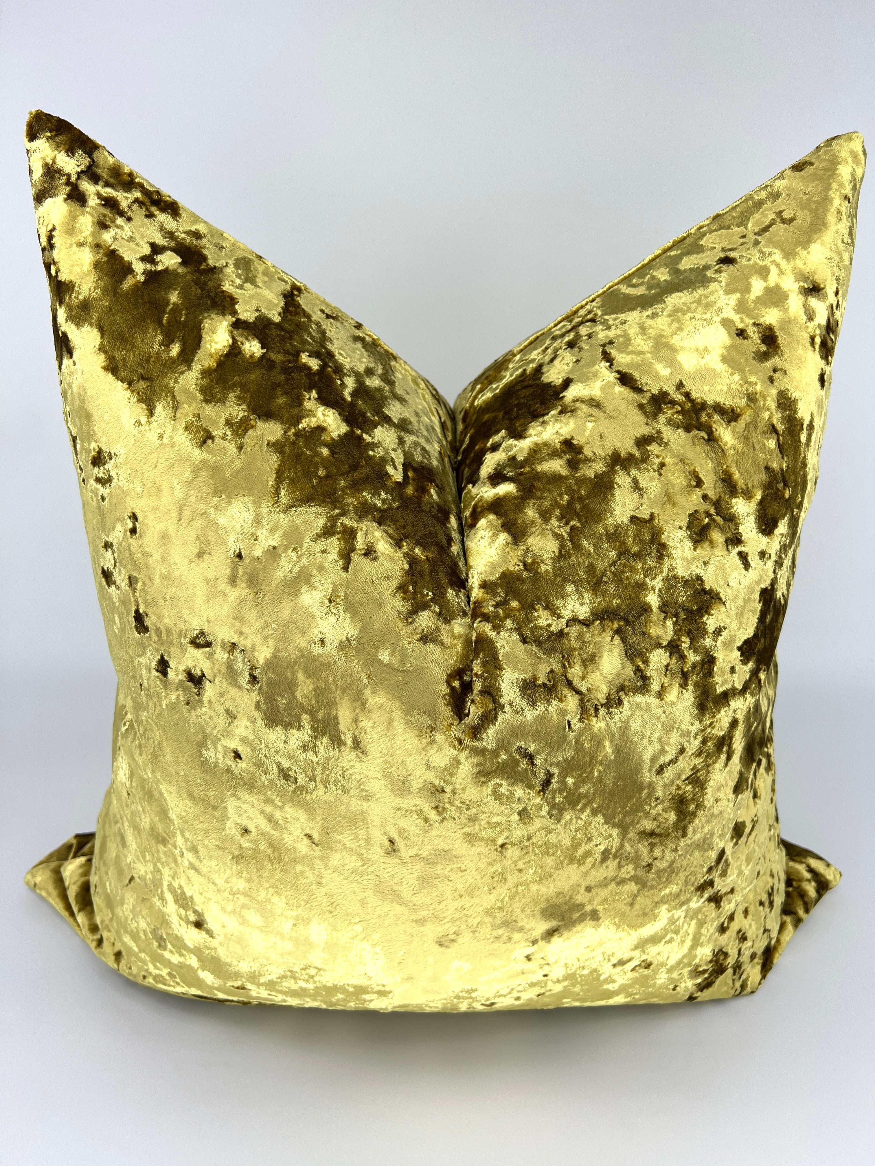 Size: 24" x 24" Fabric: Gold Crushed Velvet on both sides Zipper: Invisible Cover Only: Pillow Insert not included. We recommend using a 26" x 26" feather/down insert to achieve a designer look FREE SHIPPING NO TAX Shipping Time: 5-7 days 30 Day Return Policy: All items in new condition...