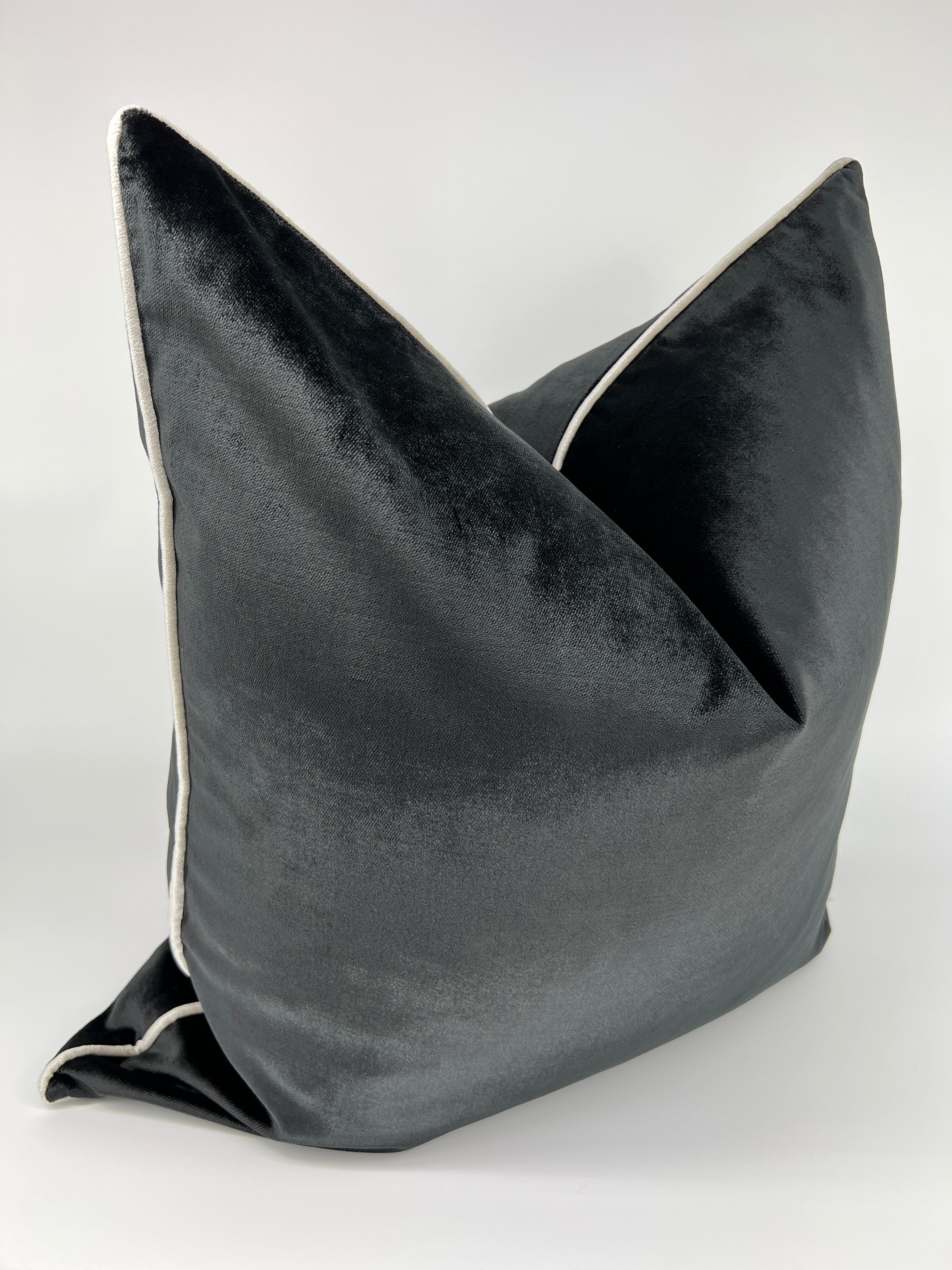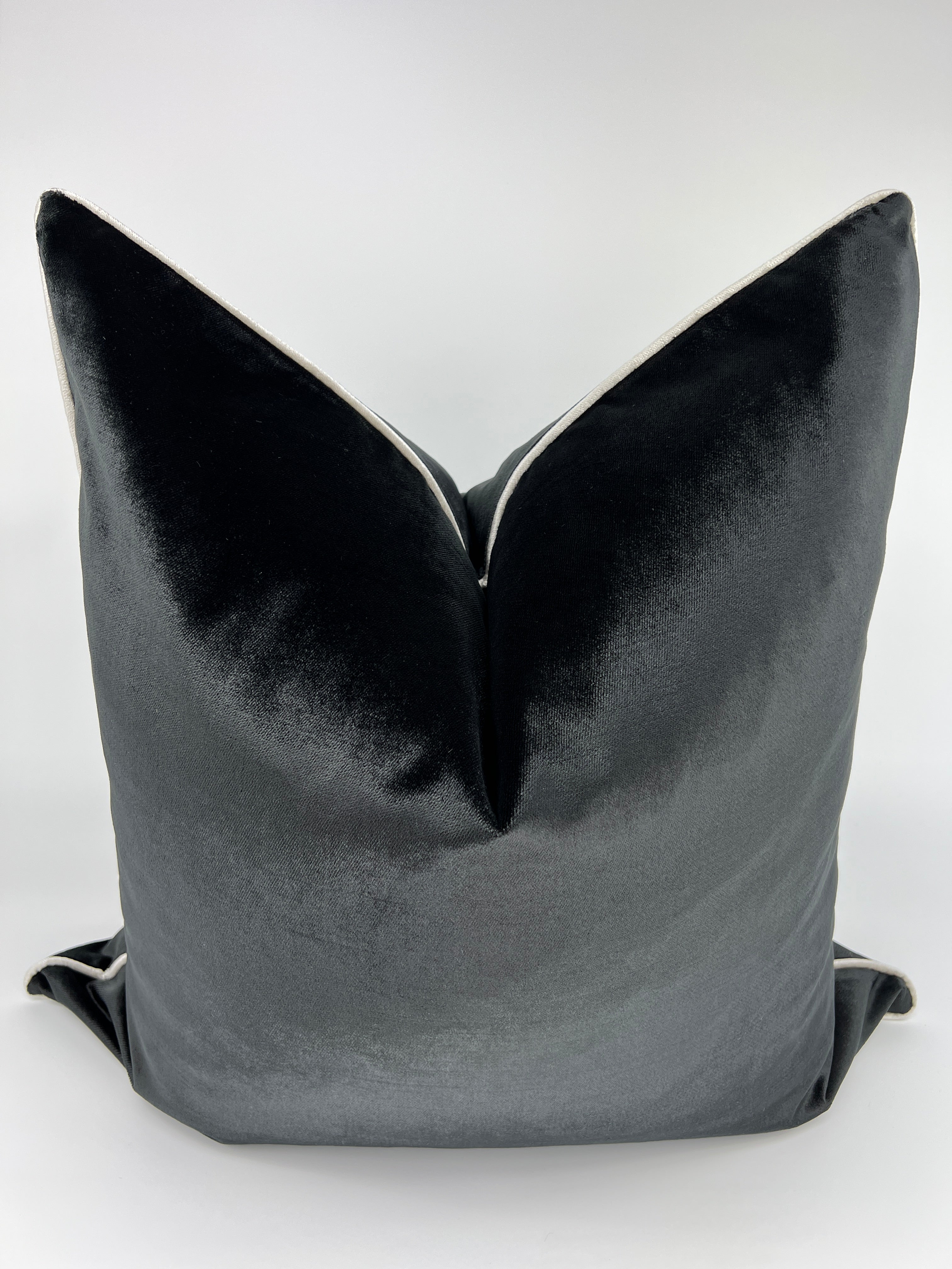 Size: 24" x 24" Fabric: Black Velvet on both sides with white welt Zipper: Invisible Cover Only: Pillow Insert not included. We recommend using a 26" x 26" feather/down insert to achieve a designer look FREE SHIPPING NO TAX Shipping Time: 5-7 days 30 Day Return Policy: All items in...