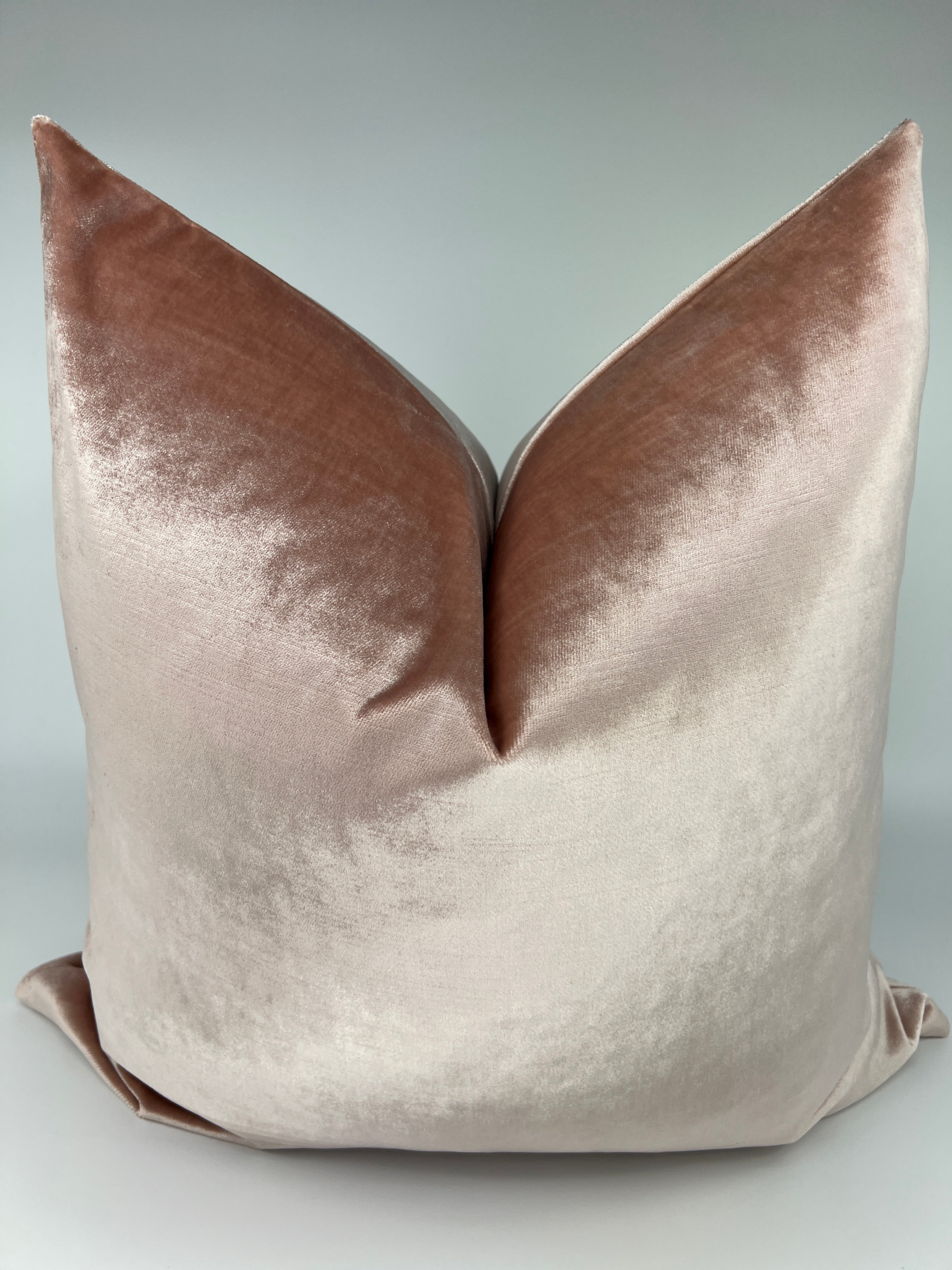 Size: 24" x 24" Fabric: Blush Pink Velvet on both sides Zipper: Invisible Cover Only: Pillow Insert not included. We recommend using a 26" x 26" feather/down insert to achieve a designer look FREE SHIPPING NO TAX Shipping Time: 5-7 days 30 Day Return Policy: All items in new condition...