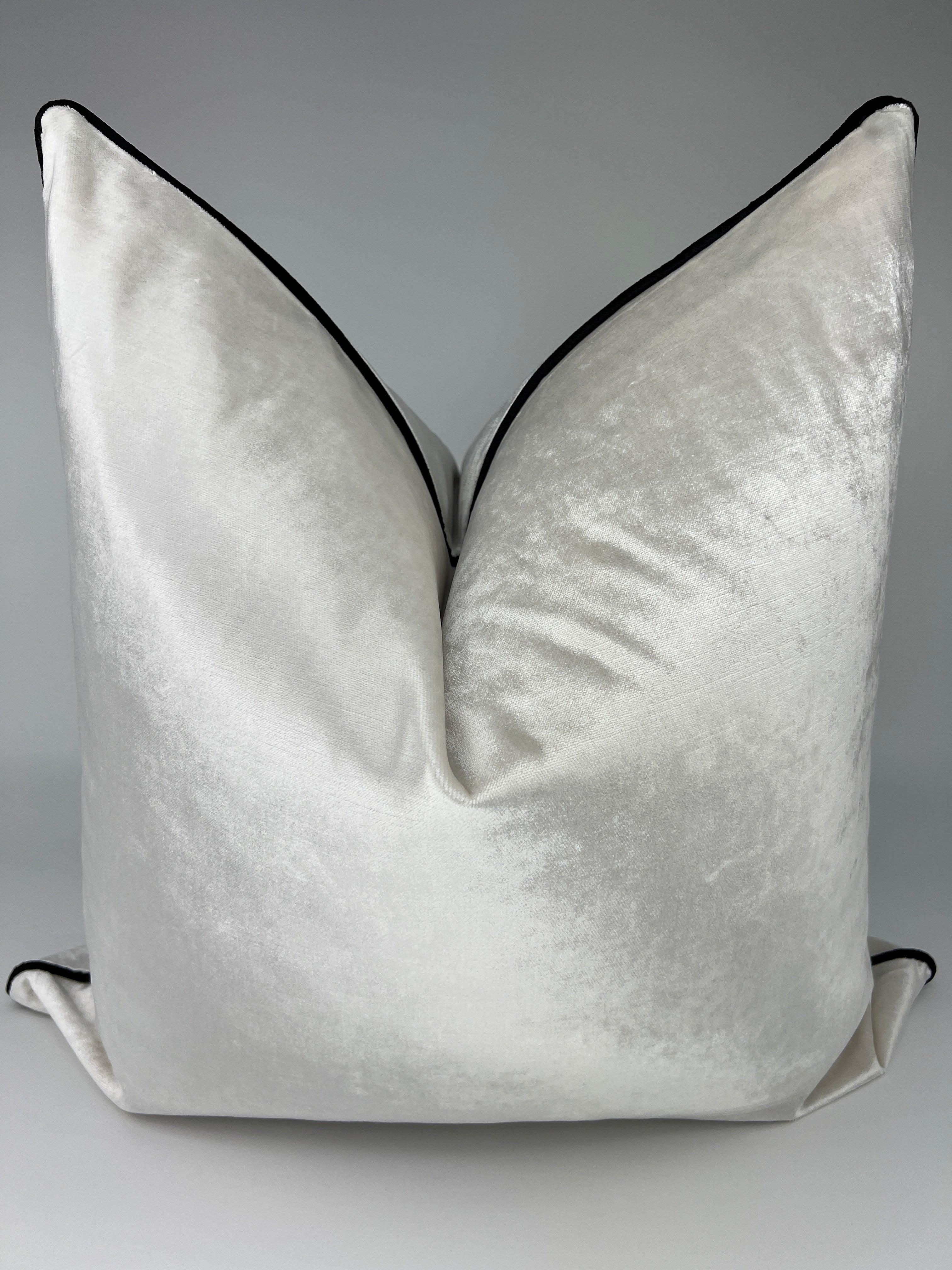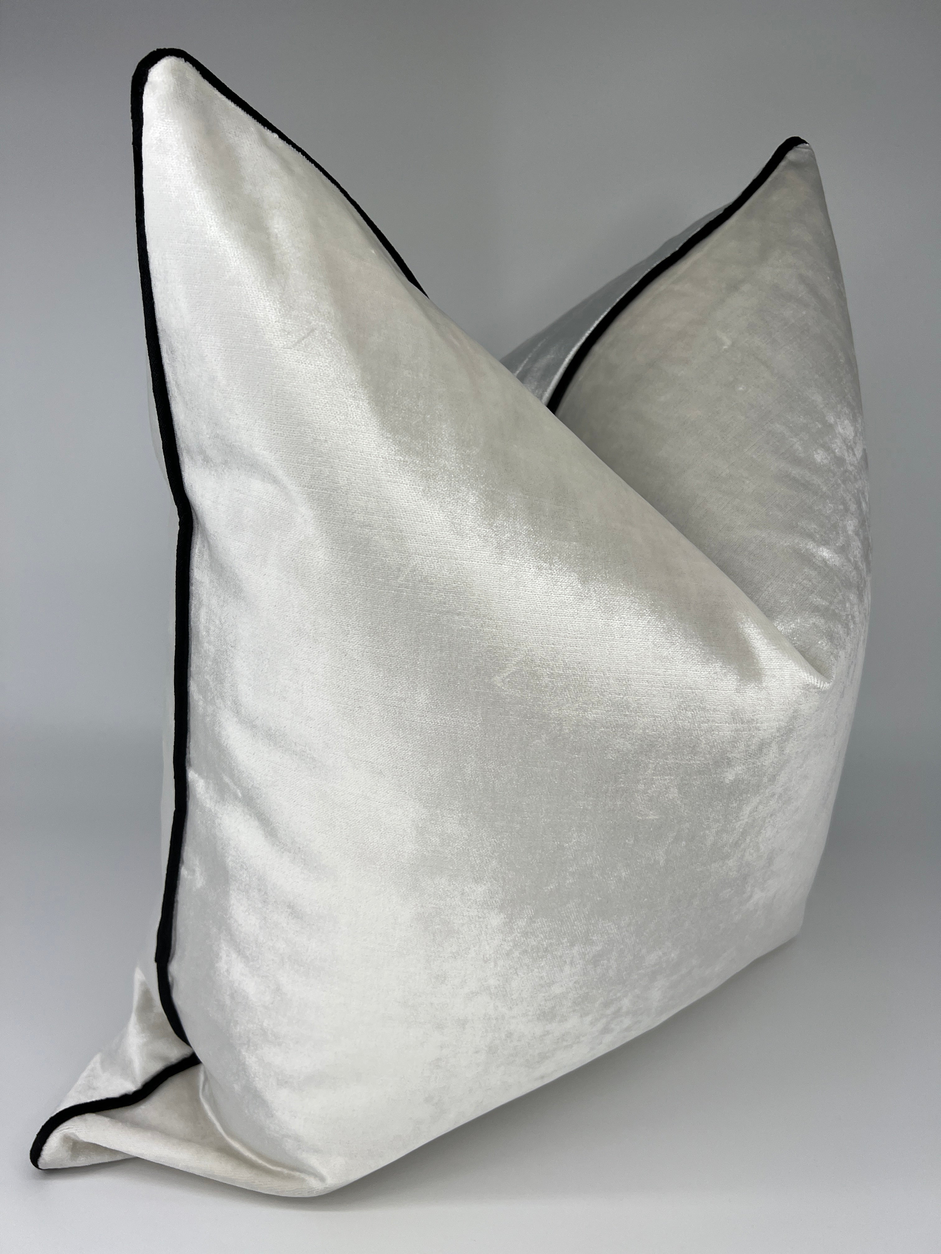 Size: 24" x 24" Fabric: White Velvet on both sides with Black Velvet Welt Zipper: Invisible Cover Only: Pillow Insert not included. We recommend using a 26" x 26" feather/down insert to achieve a designer look FREE SHIPPING NO TAX Shipping Time: 5-7 days 30 Day Return Policy: All items...