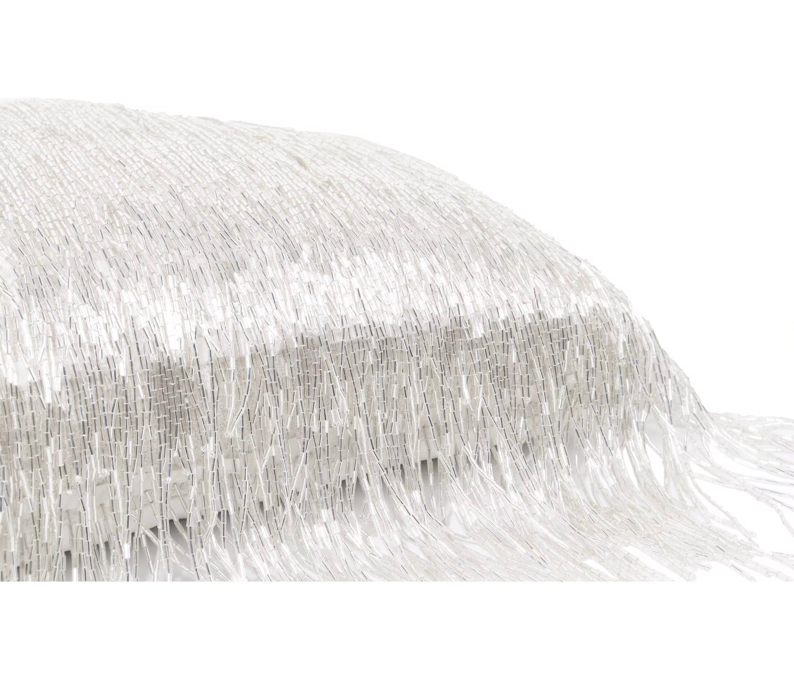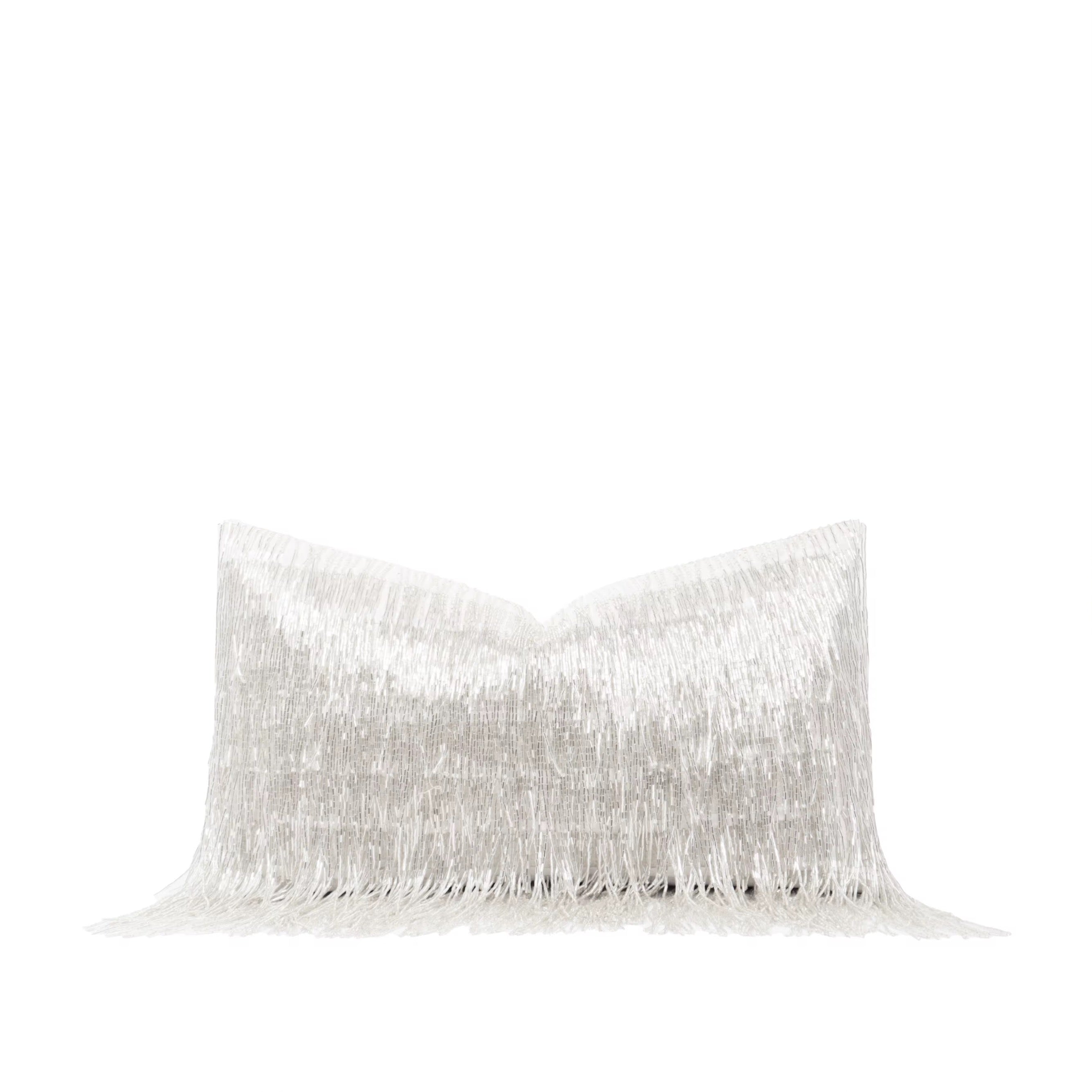 Size: 12" x 20" Fabric: Multiple white beautiful beaded strands Cover Only: Pillow insert not included. We recommend a 14" x 22" feather/down insert to achieve a designer look Shipping Time: 2-3 weeks